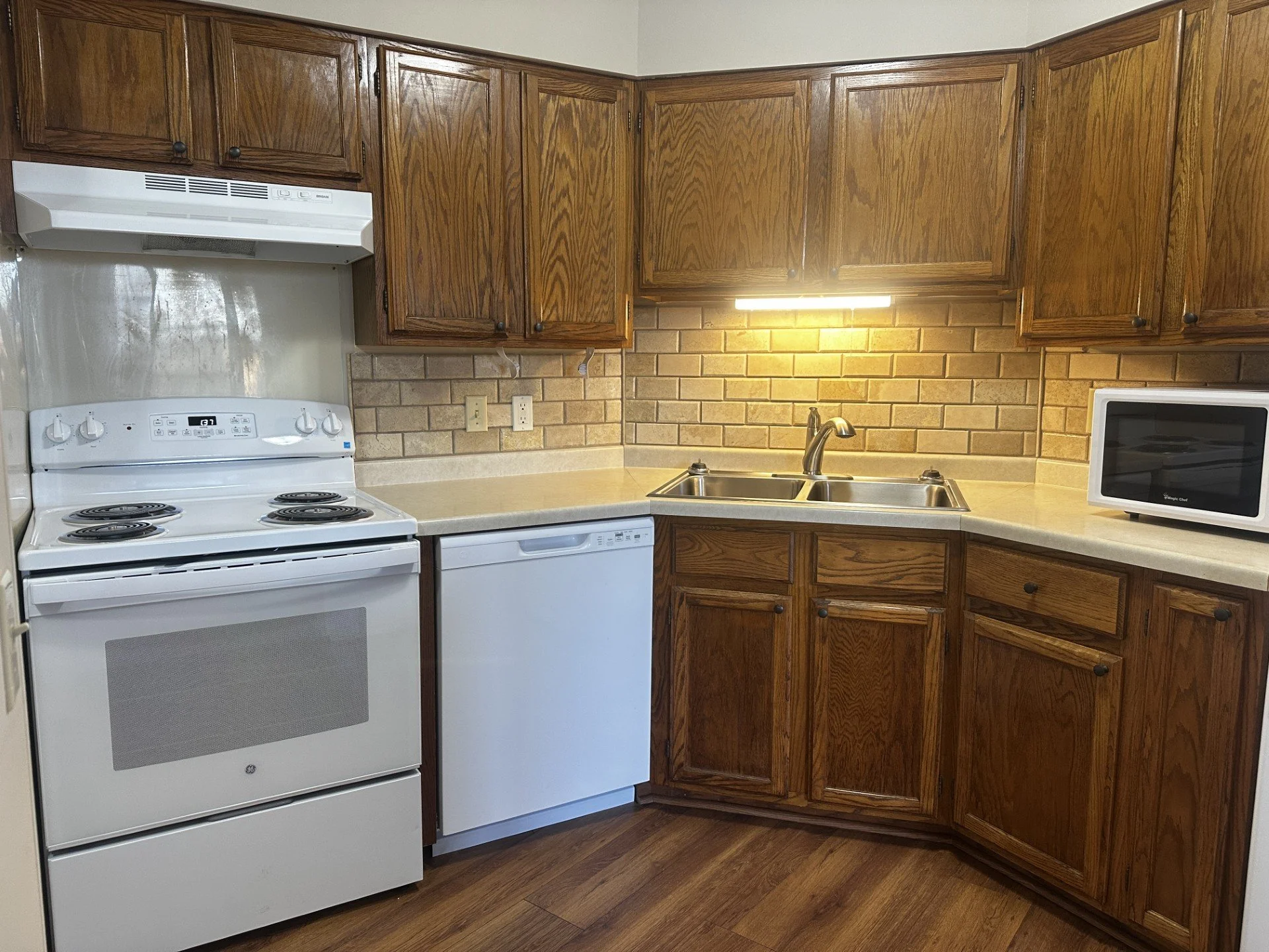 This exceptional end unit features a full tub, providing a comfortable and relaxing bathing experience. The entrance and kitchen showcase luxury vinyl plank (LVP) flooring, which combines durability with a stylish look. Ceiling fans in both the bedroom and living area add a practical and aesthetic touch, enhancing the comfort of the living space. The thoughtful design and modern finishes throughout create an inviting atmosphere that is perfect for everyday living.